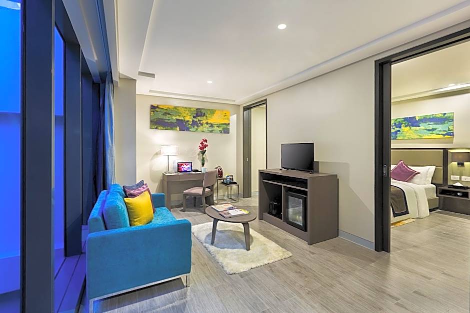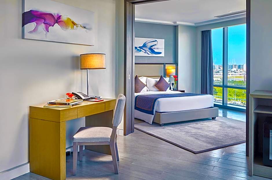 This suite is consisted of of 1 living room, 1 separate bedroom and 1 bathroom with a shower and free toiletries. The suite features tiled floors, a seating area with a flat-screen TV with streaming services, air conditioning, a tea and coffee maker, as well as a wardrobe. The unit offers 1 bed.